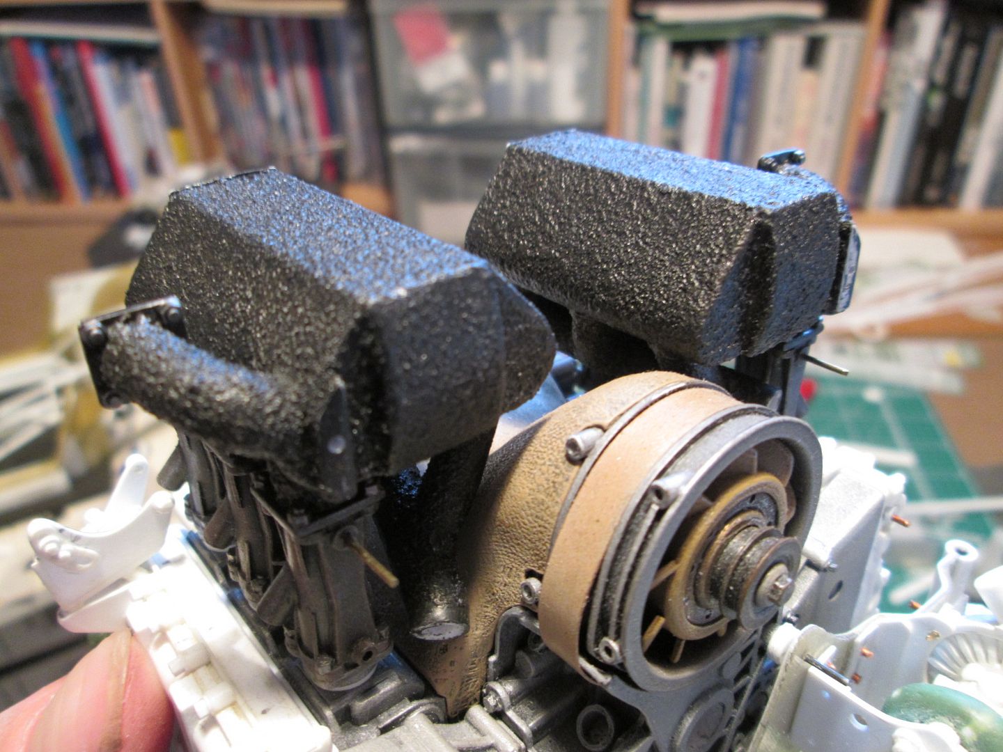 I was looking at a spray or paint-on technique first mainly because of the shape of the intercooler housings - as well as the main part to cover, you've got the three connecting pipes to the inlet manifolds, plus the pipes which run to the turbos. The sandpaper technique could work on the main body, but I might struggle to adapt it to the pipework. The caster sugar idea isn't bad, either. I actually thought of something similar at the weekend, when we were making pizza - semolina! Fine, granular, and smaller than the (new) glass blasting beads. I'm certainly going to invest in a new can of photo-mount before I do any more test pieces, as I'm sure that will help. I've got a variety of sandpaper sheets already, so I'll do some painting samples with those to see the results. Maybe I'll end up using a combination of techniques...? I had a look at RobRex's 935 build thread too - he got the sort of effect I'm looking for, but didn't really explain how! I know he used a lot of microballoons on the fibreglass parts, but I'm not sure about the intercoolers. Right, more testing required! Thanks once again, SB |