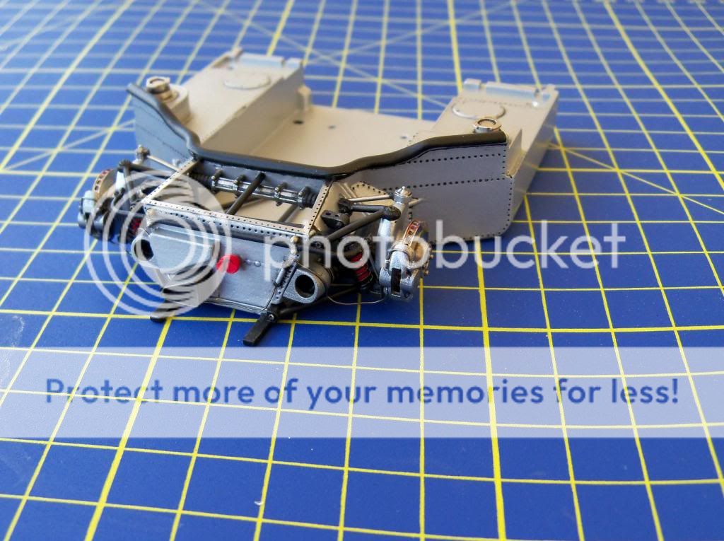 Back to 312's progress with front suspension system. But before that, I try to correct the Hiro's faults. So for the rear brakes hiro gave some PE parts. For the fronts, is only white metal. So I try to found some new PE's, to match the shines of the front and rears. Of course some modifications needed. ![]() ![]() ![]() ![]() Also, I replace the front brake cooling hoses, and I add some details on it. I plan to leave the finished model without wheels and body panels, so I put the hoses in a 'freestyle' place. ![]() ![]() ![]() The front suspension installed on the frame... ![]() I add, PE rivets in suspension support points, as I do for rear parts. ![]() So the front finished suspension is like this: ![]() ![]() ![]() ![]() Hope you like it... Best regards George |