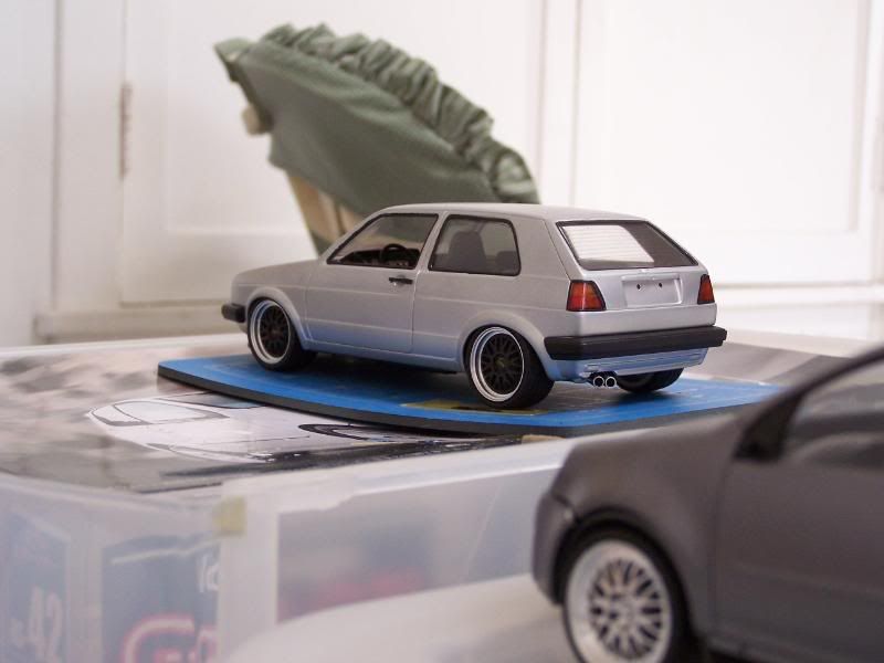 as now I have a hobby specific build area in a clean garage. (As opposed to the dining room table where much of the build took place.) ![]() ![]() ![]() ![]() I was 90% done, then glue ran onto the paint while glueing the front bumper on. ![]() |
