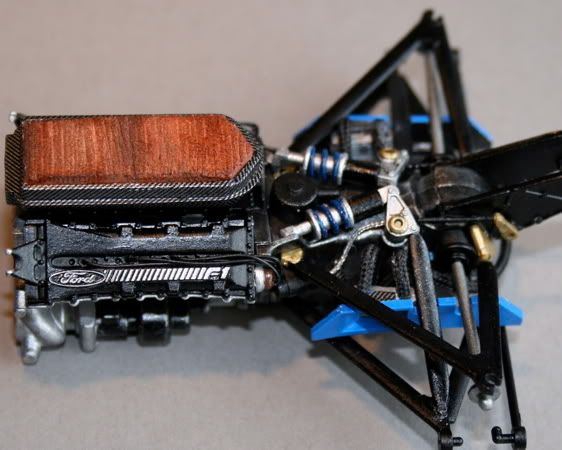 Some nice detailing on the engine my friend.The air cleaner looks very convincing! Have you tried Hiroboy for the hose end connectors? He does some excellent plumbing supplies on his website along with braided hoses and connectors of various shapes and sizes.I got a bunch of stuff from him to use on my McLaren build.It's worth a look.Keep up the progress with the Jordan.I look forward to your next update.