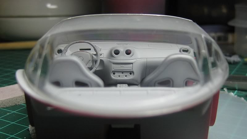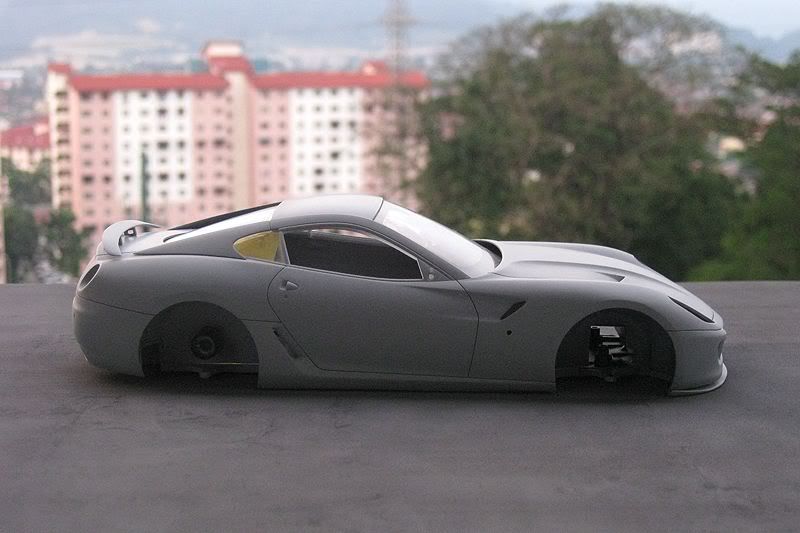 after detailing the interior, it must be wasted if it's not very visible from outside, so i cut the window for a better view, first drill out holes using 0.7mm with a dremel ![]() then some photo-tech rotary saw, carefully saw along the dotted holes ![]() then using photo-etch saw to cut where the rotary saw can't reach ![]() until here it just took me around 15min or less, then i slowly sand till i get the right shape, took me around 1 hour ![]() the result, a better view from outside ![]() ![]() ![]() rear window had this defroster thing, but it is too thick and block most of the view ![]() especially this angle ![]() so i sand it off using 600, 800, 1200, 2000 then compound with tamiya coarse, fine & finish, took me few hours ![]() ![]() i think i will skip the rear diffuser splitter, tried 3 times with no success, a bit demotivated, since i'm ready to start painting |