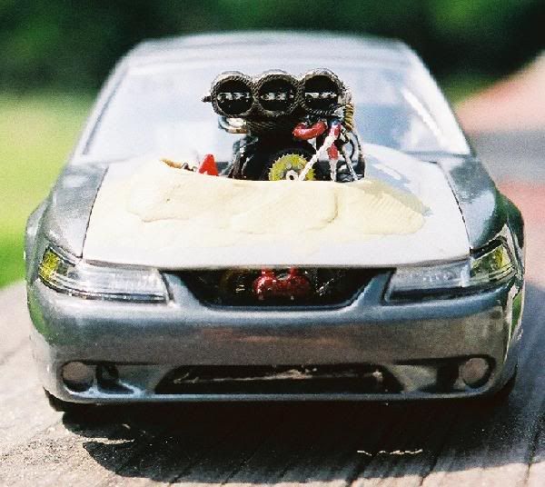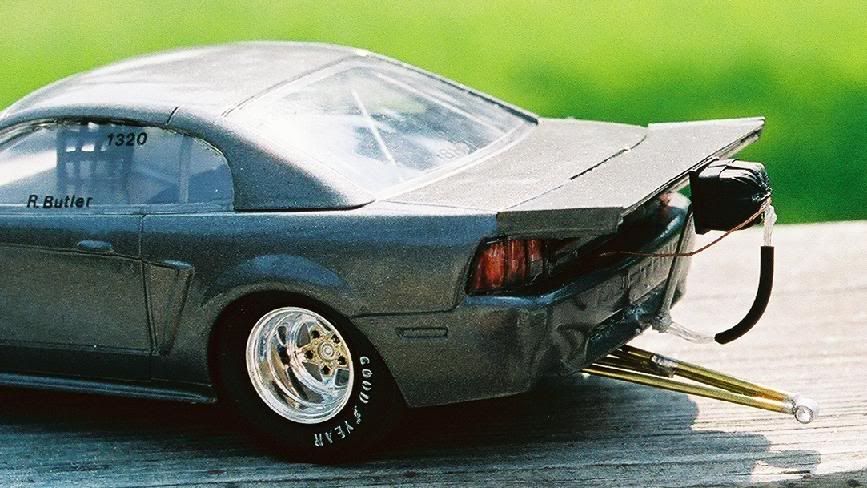 1. The plug wires seem to be a bit out-of-scale. I know racing wries are generally thicker then street wires, but the ones you are using look more like hoses... 2. Interior is nice...seems a bit rough. the dash panel is definately unfinished and becuase it is such a promienent piece you want to glue it on straight. The guages seem tiny for a pro mod car. Remember that the driver has to see these guages and rely on them, so they are quite prominent on the 1:1 vehicles. 3. The body is awesome! no critics!