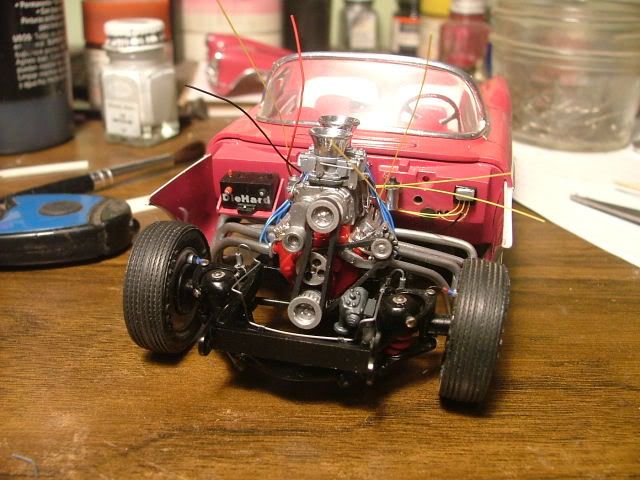 sure thing, hope this one helps. like i said before, i wasnt planning on doing anything special when i started and the hubs are stock. i couldnt get them apart later on so i just added a piece of plastic to hint of a disc brake system. the lines are not correct for a corvette, just sorta made them up loosely based on a real corvette project i found on the net.