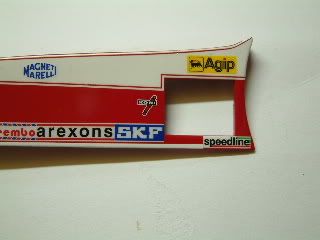 Step 9 began work on the chassis so I decided to cut the sides off with a fine saw to assist in painting and detailing the part ![]() I've already posted pictures of the chassis underway so it was time to start painting the body parts. Unfortunately I realised after painting and decaling the part that I had missed the smaller radiator opening on the version I'm building, (late 1978). I considered just moving on, who would notice? but I couldn't! Out came my second kit and the modifications started again. ![]() ![]() ![]() Here are my machined front shocks from Step 12. I also started Step 13, which includes the steering wheel. This was painted with Citadel colour black spray which looks a lot like leather. The logo is MFH (Model Factory Hiro) and I also added a Scale Race Cars toggle switch. I've added a comparison picture with my FW 24 wheel to show the massive difference a few decades can make! ![]() ![]() ![]() ![]() Almost finished