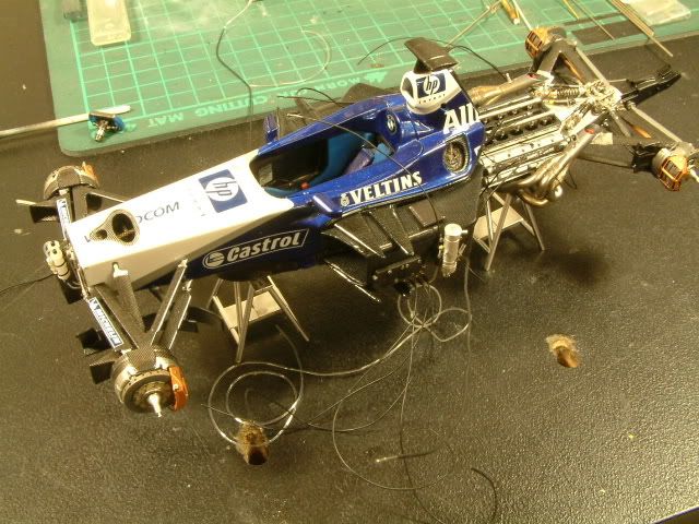 I have had quite a few distractions lately. First I had a meeting with a little Ferrari and then during my first week of holidays I moved my workshop here are some quick shots![]() (Sorry for the poor picture quality if more photo's are requested I'll do a finished thread on this car, once it's totally finished!) ![]() I'm finally back working on the Williams. I've started on both sidepods. ![]() ![]() ![]() Also completed are the nose and the steering wheel (I still need to add some wiring here) ![]() ![]() ![]() and I've also finished all the front suspension ![]() I'll have some more updates VERY soon. Thanks