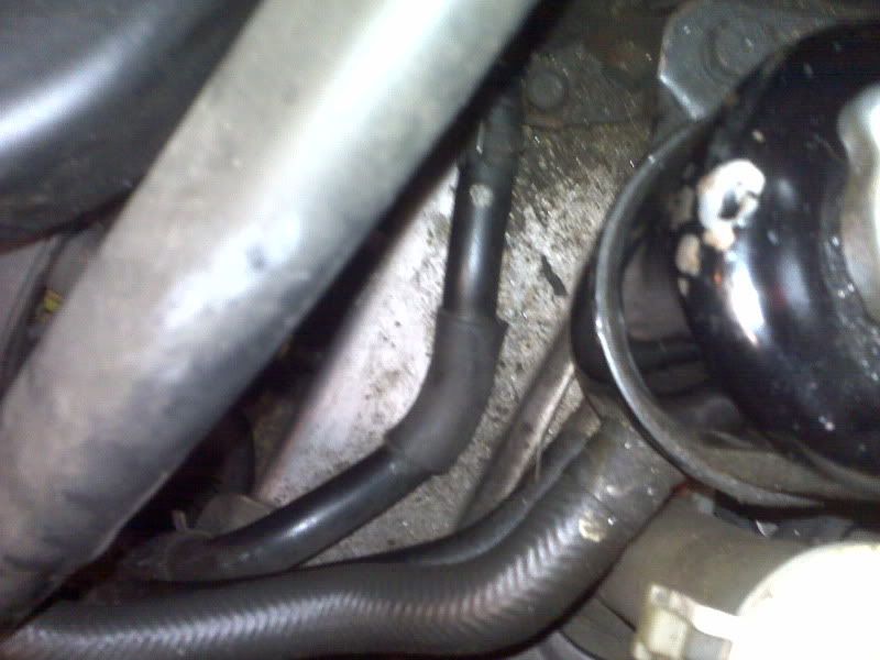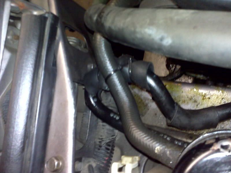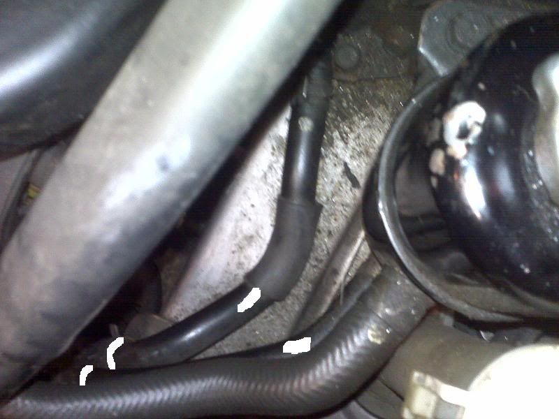 In this picture you can see the 2 lines marked with white spots and also you can see where I removed the clamps from the lines that connected to the cooler.