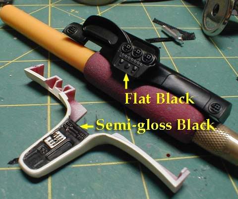 I painted the radio face with semi-gloss black and the a/c control panel with flat black to accentuate the details. It's not so noticeable (especially after the body is glued), but I just wanted to do it.