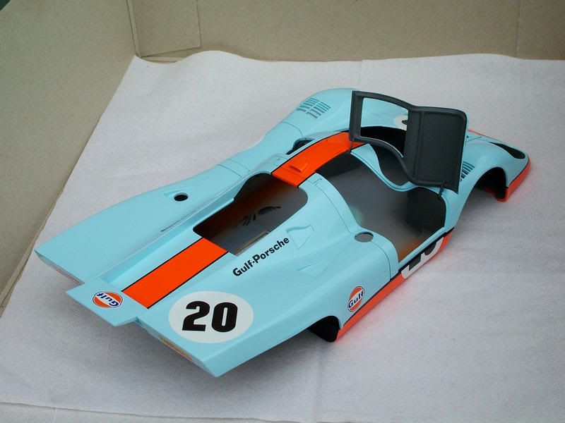 As for the underside - I just masked off the orange, streaked some smoke on the white then rubbed in some orange rust from Tamiya's weathering set. Any blotches and whatnot are purely a bonus. As we figured out in Sean's thread the underside was painted white when the original 25 917 chassis were built and presented for homologation in April 1969 and seemingly never repainted. By the time of the film over a year later it would have been dirty and scratched under there. That is all I’m aiming (or shooting in the dark) at. |
