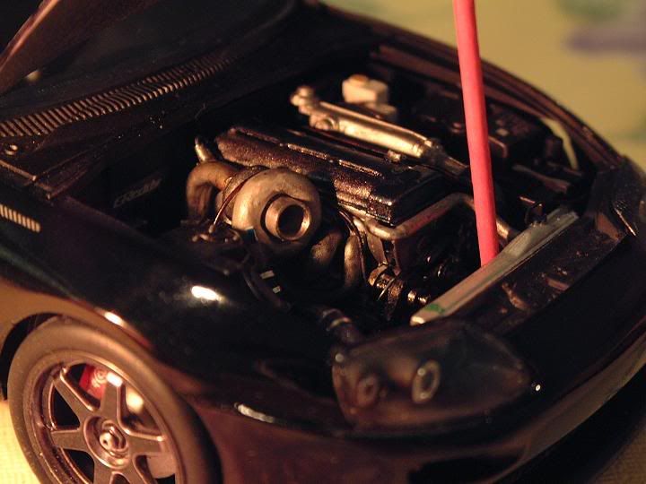 ![]() Built the hot pipe and clamps, then hit it with TS42, hit the cold pipe with the same. More wiring done. ![]() ![]() added oil feed line for turbo ![]() Im getting bored with it now, and can honestly say its just about a wrap. Needs a catch can and a few other bits but she's pretty much there. I'm itching for my next project (C6) but I want to hold off for an airbrush. Maybe I'll do a quick C6 build for practice, they're only $10. That sounds fun.