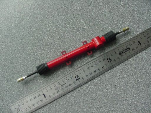 ![]() The steering rack. Kept the housing and internal gears from the kit. Replaced the tie rods and made them adjustable. Cut left and right hand threads into them, only the left handed parts are shown here. Yes, the nut was threaded onto the rod. The adjuster is intentionally "marred", ever seen one after it's been wrenched on a few times? - Mark ![]()
