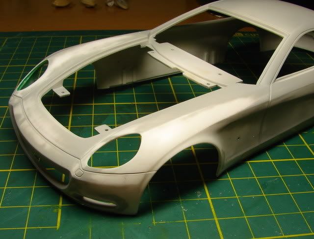 As mentioned in my Chinese friends Mr.Ping and Pong's great double project, the body should be taken good care of. Here're some pics after corrected the wheel arches and lines etc. ![]() ![]() Over sanded a little on the rear right side, so I reshaped it with some putty works, don't worry about the symmetry, I've checked it very carefully with both my eyes and my hands and I think it's pretty good in naked eyes. ![]() As well as the front air inlet for brake disk. ![]() I will use none of the original parts of the headlight, they all suck. First I made the cover, the original cover was polished out and used as the mold, then I warm casted the cover with a piece of PVC sheet. ![]() ![]() It's not perfect, there's some dust out there so I need to remade one, and also some fitment issues to be solved, but it looks much better than the OOB part IMO. I've removed the crapy XXX(Sorry I don't know how to describe this correctly, you know what I mean...)on the wheels, and joined them into one piece. The brake disks will be replaced with the 360's from my junk box. And they're ready to be painted. ![]() Thank you very much for looking, any comments are welcome as always. I hope I can make more progress later, stay tuned. |