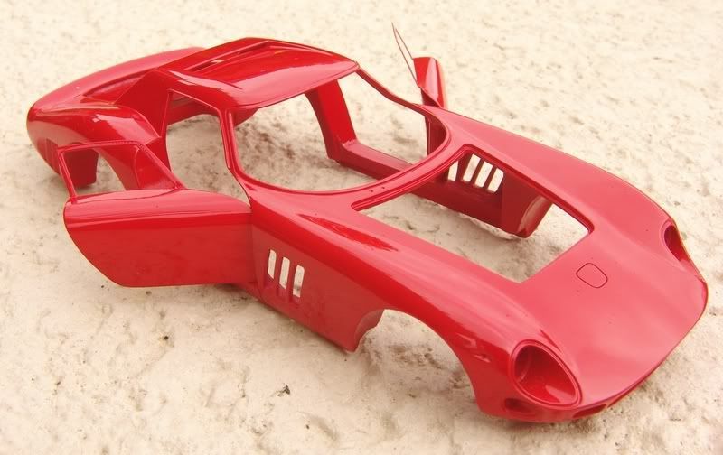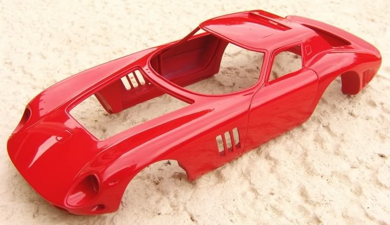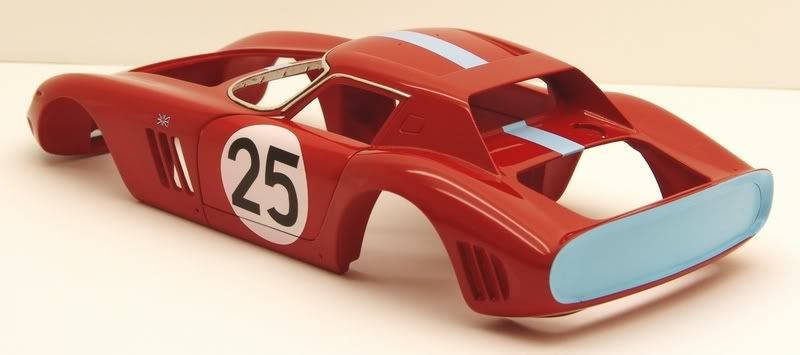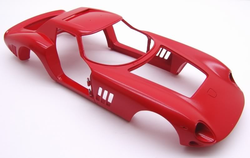 But, as you said, the wheels are too dark. The wheels on the real car look more like anodized so maybe using acoat of clear blue would give a look that you are after? One more thing, that i normally wouldn't even mention, but since this is really looking perfect otherwise: The chrome trim around door glass is wrong. It should be on the door frame, not on body trim. http://www.barchetta.cc/Common/Image...250GTO.011.jpg -Niko