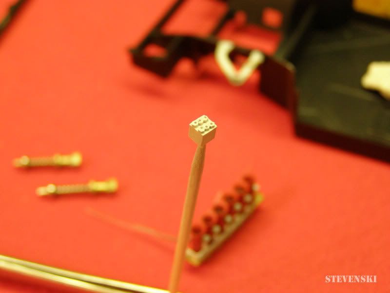 I decided to take a bash at the Gio "Gauntlet" ![]() Here's where I am trying to go wit the fuel pimp: Styrene rod and hex slices ![]() ![]() While I ponder that one further I assembled teh painted shocks ![]() I put down some Zero Racing White yesterday (creaaaaamy paint ![]() Catch you later