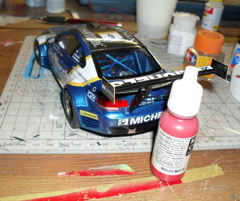 I add also the 2 little springs for the back, and also fixed in position the main wing using cianoactilate (in points) and vinyl glue thinnered in water,to be sure the glue will be resistant, and dry vinilic white glue is much more resistant than cyano. During this final part, I damaged the right side window, so had to open again the car to replace it with a new (and better printed also) one. ![]() ![]() ![]()
