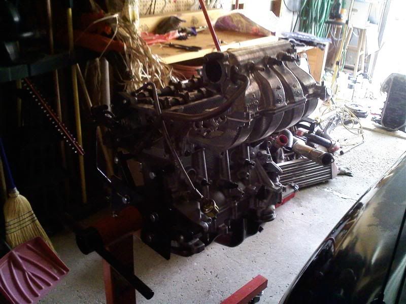 Got pretty much everything except the crank pulley and sprocket from the old block. That thing is ready to get pulled. I'm think I may lower the car, and then drop the motor out through the bottom. -All fuel lines in the bay are now SS with fittings -SFMU installed -Getting new alternator before it goes in -Repainting all coolant lines -Grinded down thermo housing to fit manifold I just have to retap an exhaust hole (stud broke) and the manifold will be on along with the turbo. Should start cutting out the strut tower sometime this week and get that going. And need to finish up wiring megasquirt soon. Not sure on when the new one is going in yet. I'm thinking 10/17 is looking good if not sooner