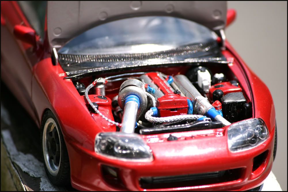 ![]() the hood still needs a lining but that will be done when i go back to the store to pick up some extra materials ![]() single turbo, fully plumbed ![]() Titanium exhaust (my first attempt, but came out fairly acceptable) ![]() rubber exhaust hangers just like on my real supra ![]() ![]() ![]() what do you guys think? questions and comments welcomed! |