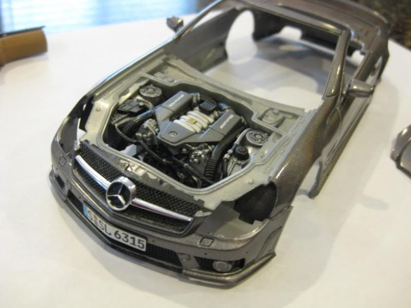 Mercedes SL63 AMG (Still waiting for a model of my daily-driven W221 S600...but I can keep dreaming) Here is the real engine: ![]() Here is the kit's engine: ![]() ![]() Wheels ![]() Brakes - I took the artistic license liberty to pain the calipers a contrast color. ![]() ![]() I already painted the body and will be waiting to clear coat it before I start taking pics