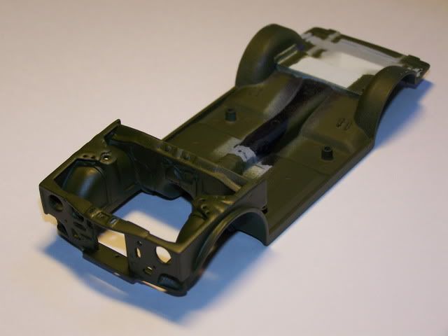 I try to improve on past work as much as I can. One thing that had always bothered me was the fact that I didn't integrate hinges into the hood. the more I look at something, the more I see room for improvement. I was going to have to re-paint the chassis since the new paint I got is a little bit darker than the olive that was originally on it...I always paint unibody chassis the same color as the body. I used the color change as an opportunity to add the hood hinges, and integrate them into the chassis. I also widened the radiator opening up...I had made the opening too small: ![]() ![]() Since I went as far as I did on the chassis, I decided the hood needed a little bit more detail. I traced the outline of the hood to a 3"X5" notecard, and made a pattern for the underside using pics I got from Kingtoy a few years ago...thanks Jeff Once I was happy with the design and the fit of the pattern to the hood, I transferred the design to some 0.4 MM styrene card:![]() ![]() ![]() That's pretty much it so far. So I'll part with a couple of shots of the engine in the newly painted chassis... ![]() ![]() ...Thanks for looking! Jimmy |