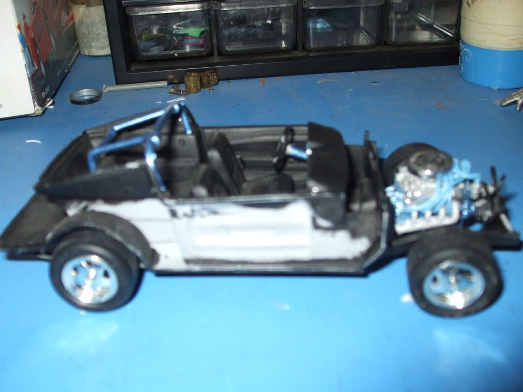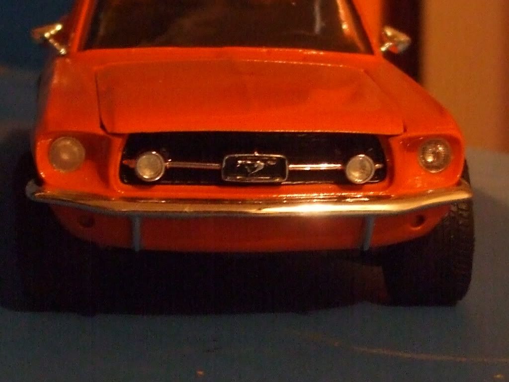 1. ease up on the paint. you have A LOT of orange peel. that could be a great color with proper painting techniques. there's a HOW TO on here on how to get that perfect shine. 2. WAY too big of spark plugs. try solder or smaller wire next time. 3. your air filter cover has some bare spots from when you broke it off the tree. if this ever happens, just pick up some chrome paint. it'll help. 4. your passenger side headlamp seems to be missing some shine. try less glue next time. On the good side... You did a fantastic job on the grill and the rest of the motor. keep building your skills and you'll get better. GOOD LUCK!!!
