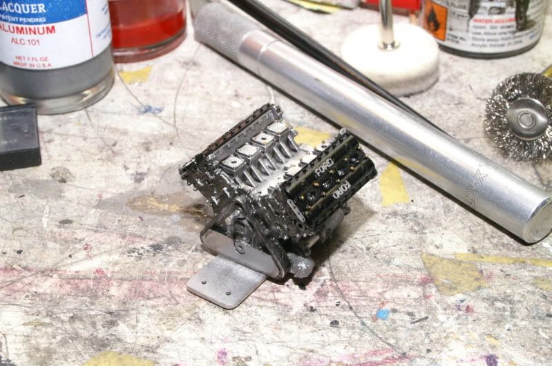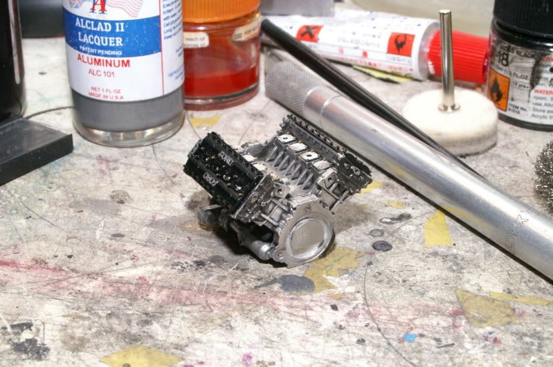 ![]() All parts have been cleaned and test fitted. I couldn't find any really big problems, just a bit of sanding and drilling and everything went toghter. ![]() ![]() Enigine and gearbox test fitted. ![]() The engine has been painted. The block was given a black wash and then a light polish to bring out some metal shine. After that the ends of the heads whear given a coat of dark steel grey. I really like how it came out, it might not be exact as the engine looks in real life but I like it and that's whats important. ![]() ![]() ![]()