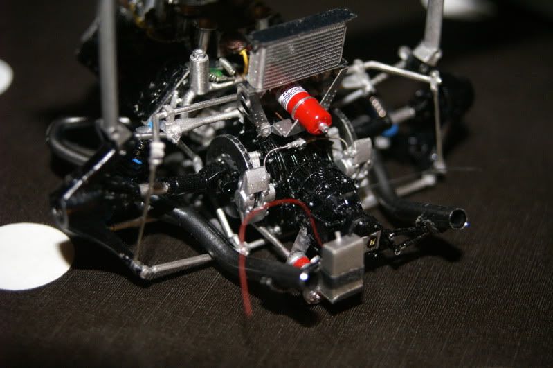 I think the engine is done now. I have added some wires for the ignition and some details on the throttles. The springs looks a bit big in the pics, but they are fine IRL.
