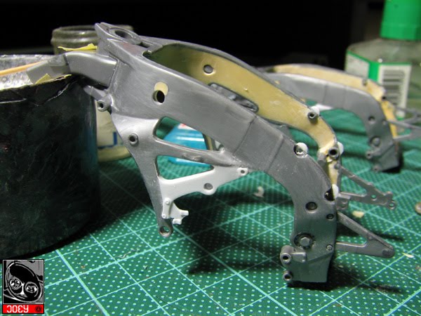 Then I have prepared the chassis and machines painted. Simple enough that I have just spent a day to work on them. Anyway, I hope I will have the energy to polish the cowling in the cokming weekend than I will have this R1 done and move on with the M1 again. ![]()