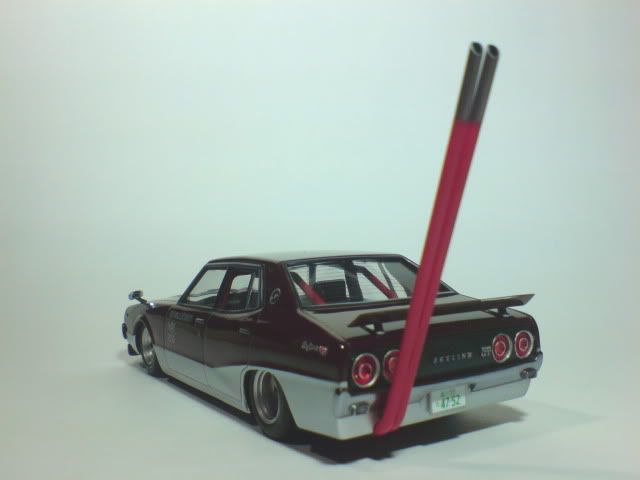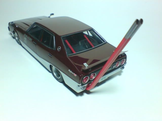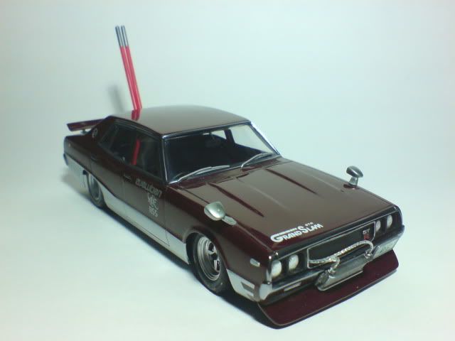 My first complete built for upcoming GB, hehe not really a super car but an ol 70s Skyline Bosozoku Style. Bosozoku is a sub culture associated with clubs and gangs. Style of modification is aggresive such as having large exhaust pipes, bright paint, large aero kits, oil coolers with polished tubing mounted in front of bumper.