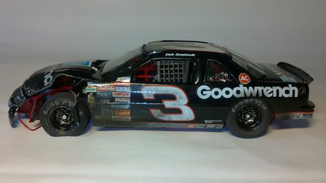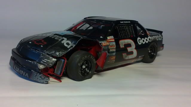 ![]() Thought I´d share my latest project for you guys ! ![]() BEFORE you scroll down to look at the pictures.. look at this video ! ![]() http://www.youtube.com/watch?v=7g5Y61TrjZE Earnhardt spun out with 3 laps to go of the 1991 Daytona 500 collecting both Davey Allison and Kyle Petty. Earnhardts car did a 180 degree turn and got hit by Kyle Petty.. and here is how I replicated Earnhardts crashed Lumina. This is not 100% done yet since I have to make a base for the car. But for so long.. Here is the pictures of the car ! ![]() ![]() ![]() ![]() ![]() ![]() ![]() ![]() ![]() ![]() I don´t usually build NASCARs so I don´t know if everything looks like the real thing.. but I tried and I am happy with it ! ![]() Best regards, Rickard |
