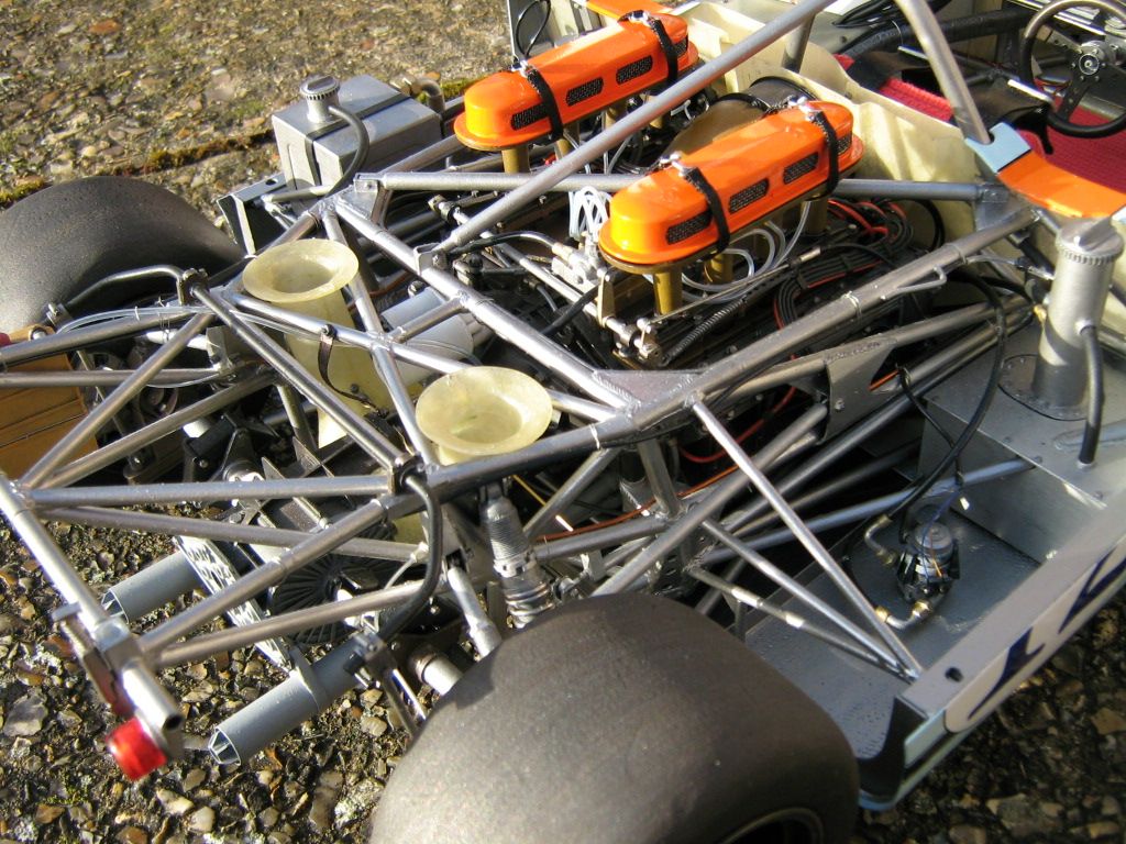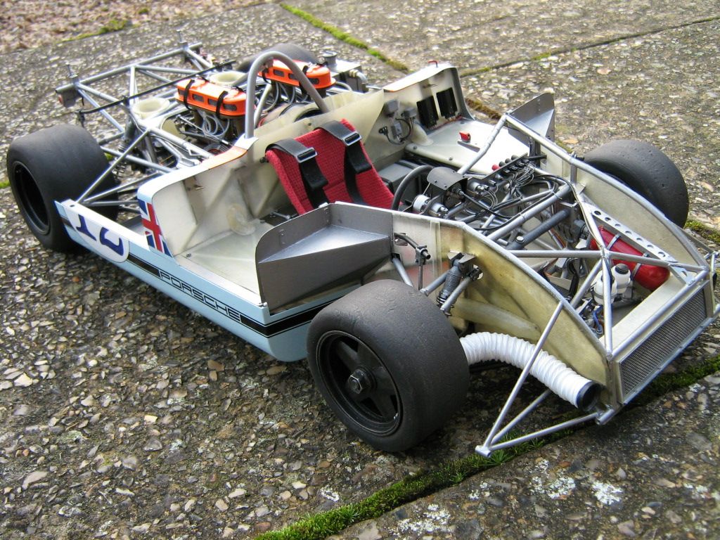 The 908/03 was developed by Porsche for use on the Targa Florio and Nurburgring 1000km as an alternative to the bigger, heavier 917. In this context it was highly successful, winning three of these four events in 1970 and 1971. Several chassis were sold into private hands for the 1972 season and continued to race in top-level sportscar races through the rest of the decade, often with changes of bodywork and engine configuration to suit evolving regulations. Car no.12 was raced to victory by Jo Siffert and Brian Redman on the 1970 Targa Florio, with other 908/03's in 2nd and 5th place. Work began on this project in November 2008 and continued through to January 2012. Although I did not keep a record of the time, experience with previous projects suggests a total figure in the region of 1800 - 2000 hours. It is scratch-built from a variety of materials including a full styrene-tube chassis with fibreglass bodywork. Overall measurements are 453mm long by 250mm wide. ![]() ![]() ![]() ![]() ![]() ![]() ![]() ![]() ![]() ![]() ![]() ![]() ![]() ![]() ![]() ![]() I'm posting a summary of materials, references, acknowledgements, etc, on the WIP thread, but I would like to thank everyone who has followed this project - I hope you've enjoyed it. Any questions? - please ask! SB |
