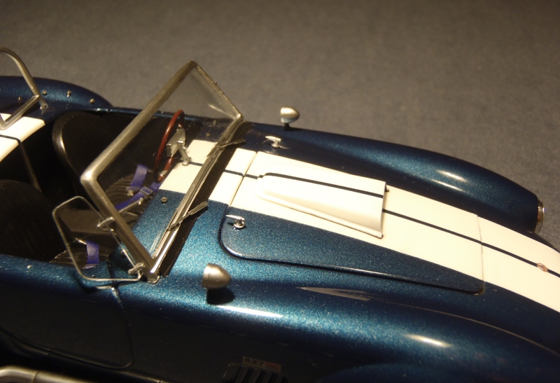 This is the one from Fujimi. I buit this about 10 years ago... but still one of my favorite . Some say Fujimi's Cobra doesn't look like "Cobra" , but I still love its atmosphere when the height is low-downed. I can't say I like it without low-downing.*Hood catch pins applied *Rear tires replaced to Monogram's Cobra's *Head light trims and fuel cap replaced to Sakatsu's (aftermarket) *Front winker... I can't remember where they were from, but replaced to aftermarket ones. *PE parts (radiator, Jack-ups, wipers, trims of maters, handle stays and seat belt parts) *Color: now defunct "Modeler's" Cobra Blue and GUNZE Mr. Color White ...the decal on dash board is about to come off... ![]() I hope you enjoy. PS. I'm sure I'll make "Monogram's" someday, with some body modifying. I got "HASEGAWA-MONOGRAM" super-detailed one in my stock .![]() ![]() ![]() ![]() ![]() ![]() ![]() ![]() ![]() ![]() ![]() ![]()