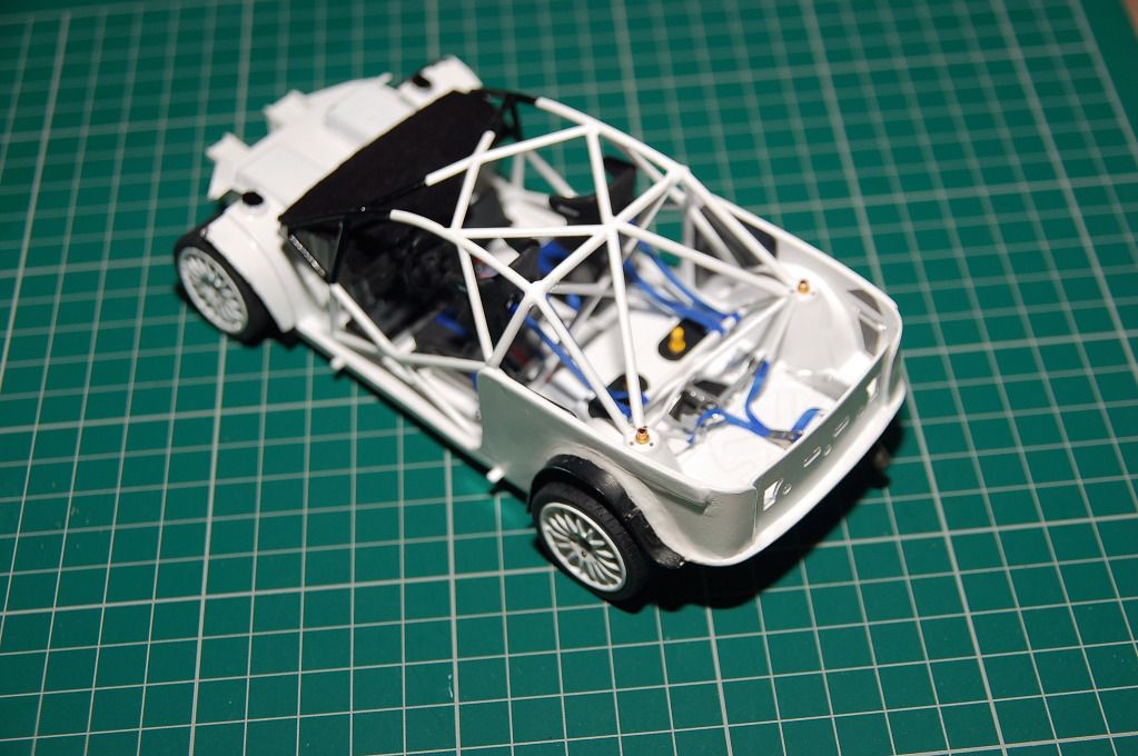 I hope I can make some improvements to the kit build, mainly addressing the glaring gaps that exist because of minimum chassis. Every single part takes a good amount of cleaning up and I started by filling all the sink marks in the chassis. I made rear internal rear quarter panels from plastic credit cards as shown: ![]() The rear part of the cage needs some rework as the two diagonal bars that go down to the strut tops are too short to reach it! These were replaced with Evergreen plastic rods of the same diameter as the kit. I also added some extra bars in the front footwell area up to the front bulkhead. [/IMG] ![]() I was fortunate to visit M-Sport recently and they have this Focus in their small museam so I managed to get a good set of detail photos. There is a elec control box mounted integral as part of the pedal box so I built this from scratch using parts from the Renaissance photo-etch kit. There is a carbon fibre guard that sits adjacent to the tunnel so this was incorporated to this part. This next picture shows this in situ. ![]() ![]() I've also made wheel arch liners that will fill the voids on the standard kit. |