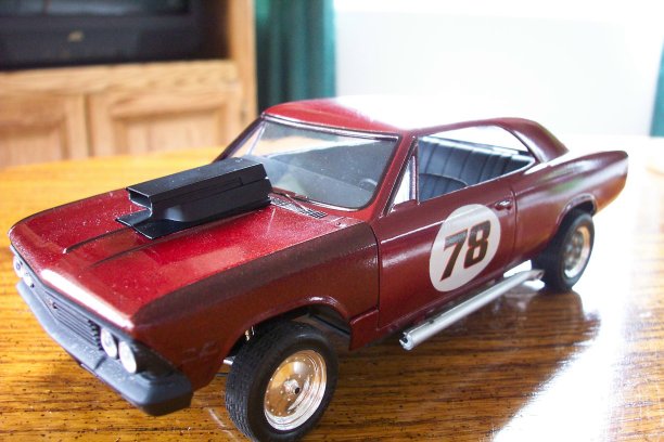 I'll give you credit just for trying to make something worthwhile out of that godawful Monogram '66 Malibu. The tunnel-ram big block looks pretty good, too.