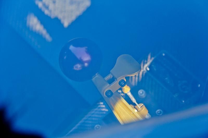#01R's chassis plate is underneath some electric tape and a digital read out -