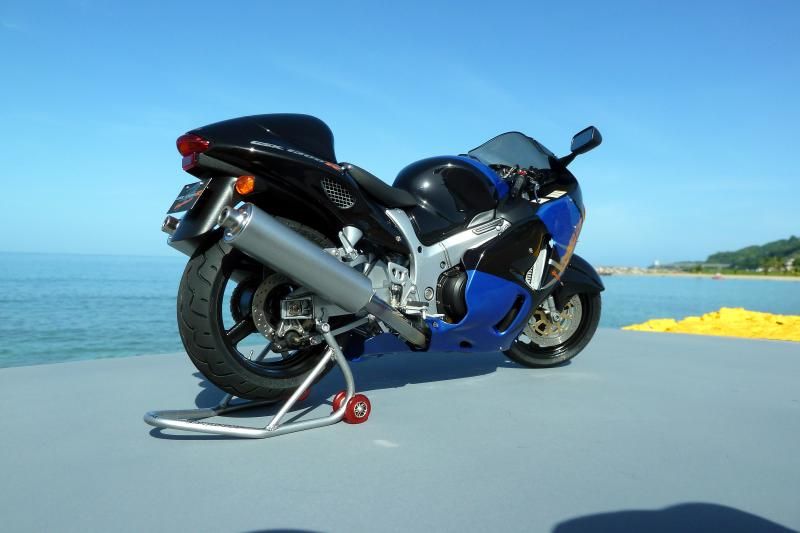 You and Steve have the best Busa's ever on this forum to date. I will have to go back and compare your bike with Steve's. I like that you chose other colors than Red and black It's hard to tell it from a real one in the beach photos I really like this one John |