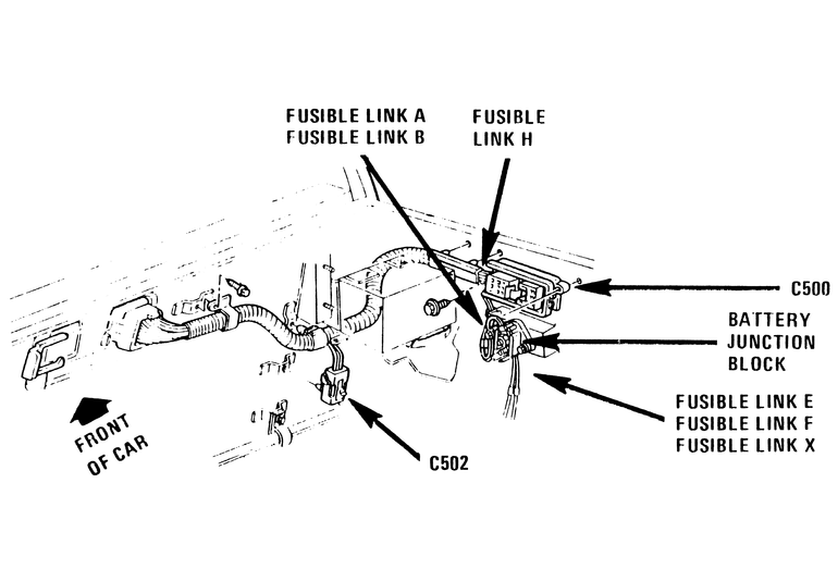 Thread title corrected. There is a fusible link at the starter, connected to the main B+ stud. This circuit powers part of the ignition switch. An indication of failure of this link or that part of the ignition switch would be that the warning indicator lamps to not illuminate when the ignition switch is turned to the CRANK position, as they should normally do. There is another fusible link near the battery positive (B+) terminal which connects to the alternator and some other power circuits. There are several other fusible links near the battery main power junction block. If any of those have failed various circuits will not have power. Before replacing a failed link it is imperative to determine the reason for its failure.