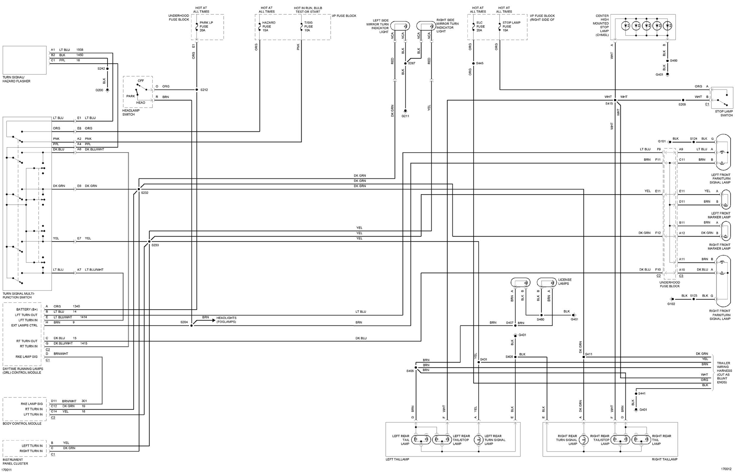 So what you need to do is get to the DRL module....... Turn on left directional, and check for power, with a test light, at terminal E, lt blu/wht, circuit #1414.....if no power, you need a multifunction switch...if you have power, check for power out of the module at terminal B, lt blu, circuit#14....no power, need module...if you have power, then you have to go to the underhood fuse block....the input to the fuse block is terminal F9 at connector, C2......check for power in...if you have power in and since you already know you don't have power out at terminal A9, at connector , C3, then the problem is the connection in the fuse block.....if that's the case, when you remove the cover to the fuse block, you will see three silver colored screw/bolts...they are sometimes allen or torx...tighten all three and recheck.....if that doesn't fix it, you can run a jumper wire from the input wire to the output wire...solder the joints.... |