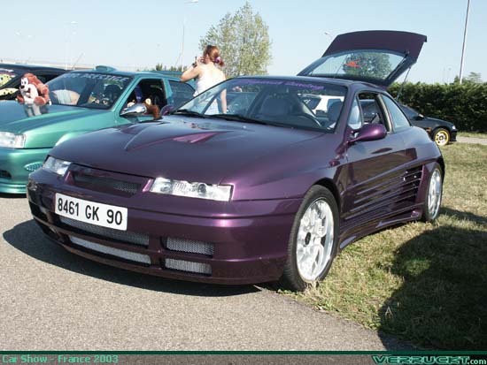 its from a show in FRANCE with a ferrari body kit and bbs (or bbs look alike) wheels... yet its riced out????? its probably an opel or something well it is indeed an opel calibra