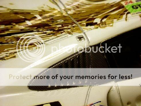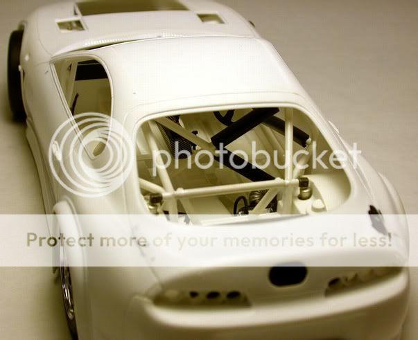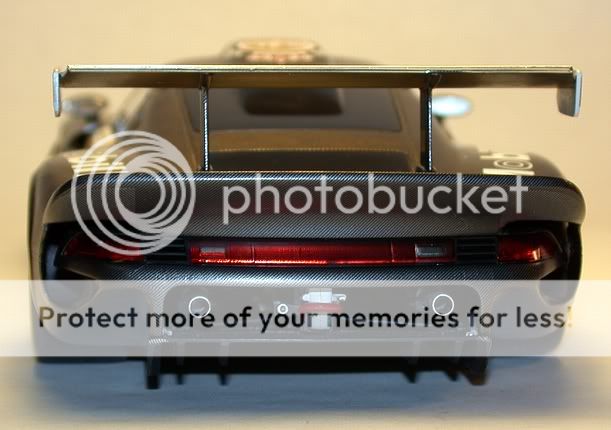 The kit requires that you paint the entire body semi-gloss black (Model Master's Black Chrome enamel), except for the driver's door and coat the completed decaled body with Testor's Semi-Gloss laquer shot from an Aztek A470 using the "white" tip at 15 psi. ![]() It was painted gloss white (TS-26) and left bare. Also the number lights were removed and the lower running lights covered by gluing down the glass covers, fairing them in with 3M Piranha Putty and painted/decaling over them. ![]() Once again, K&S supplied the new exhaust pipes and there was a little more detail painting on the transaxle-catch can area and the wing enplates were made from K&S flat sheet aluminum . ![]() The "passenger" side shows the CF covered door and the beer livery. ![]() If you've ever had a problem with decals, esp. SMS's type, doing this kit WILL make you better! ![]() If Darth Vader raced, this is what his car would look like. ![]() SMS has given us an incredible decal kit and it makes one beautiful model. This one will have the external body latches added soon and both this and the white GT1 will have their fuel inlets replaced with Renaissance PE parts. Hope you all enjoyed and if you have any questions...please feel free! Thanks, Bill |