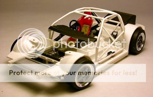 This is a multi-media kit including resin and white metal parts with a semi-detailed engine. ![]() The color is Tamiya TS-08 that was rubbed out using Meguier's products with a final overcoat (including decals and glass) of Turtle Wax Ultimate Carnuba wax, with a chassis mix of MM Black Chrome and non-buffing brass (75%-25%) to give the illusion of CF. The Goodyear's on the tires are dry transfers from Shabo and the decals are Umi with MM non-buffing aluminum covering the 5 spokes of the wheels. ![]() The wheels will soon have seperate nuts (cast from resin by me) and aluminum tubing spindles over the white metal brembo brakes and the tub will be recovered in SMS kevlar decals. I'm in the process of scratchbuilding the rollbar tubes out of...what else, K&S aluminum tubing! ![]() When this kit first came out I jumped and bought it ASAP...and I still feel giddy when I see it. Hope you all enjoyed and if you have any questions...please feel free! Thanks, Bill |
