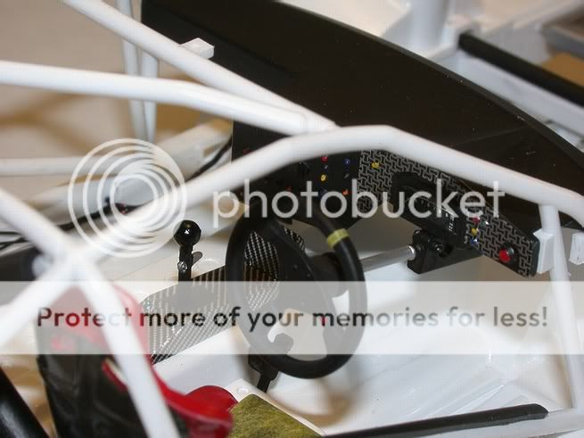 While Jeff DID compete at LM, this version builds into the JGTCC version. ![]() I just couldn't stand the blue wheels so I ended up using a mixture of MM non-buffing exhaust and gunmetal. ![]() The mirrors and the wing uprights were modified to use pins to set up their correct alignment and all body clips and external switches were sanded smooth or drilled out and will be replaced with either PE or scratchbuilt alternatives including the external fasteners on the rear fender extensions. ![]() The chassis and body have been painted with Tamiya Pure White. The seat has gotten a respray, once again deviating from the actual red to a black/grey/light grey color with SMS CF decaled back in pewter/black. ![]() The undercarriage was covered in Bare Metal Foil on the driveshaft tunnel and firewall. MM buffing exhaust was used for the engine/tranny/rear end assembly. The driveshaft was replaced with ally tubing and the front shocks were modified using real springs. ![]() Rollcage foam tubing was simulated using wire shielding and the various black boxes, oil coolers and fire bottle were plumbed. ![]() Dash decal is Tamiya's, console decal is Renaissance/Virages. Detail painting was done with Tamiya and MM acrylics using a sharpened toothpick. Centering strip on steering wheel rim is a thin layer of Tamiya masking tape. ![]() The connectors to the rear oil coolers were scratchbuilt out of styrene and coated in Tamiya clear blue. ![]() The fuel tank was painted semi-gloss black and then covered in SMS CF decal and 8 PE NBW assemblies were installed using Future as the glue. Currently 2 coats of PPG Nason 2-part auto clear are hardening on the body and related parts. I'll post the updates of the body polishing (micro-mesh) and decaling job...which look sot be a NIGHTMARE! Jeff was one of the few Americans who's abilities made him a legend in another country (Japan) and his premature death on a Canadian streetcourse was a shock and reminder to all fans that racing is indeed, a dangerous sport. Thanks for everyone's kind words and thanks for showing us your great LM and sportscar models! Bill |
