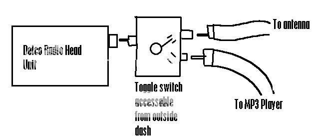 PAman- I had an idea. the car antenna connects to the radio in an outlet similar in size to an RCA Video/Audio Jack. Could a Y-Adapter and switch be used to branch the antenna and a line in for an mp3 player?