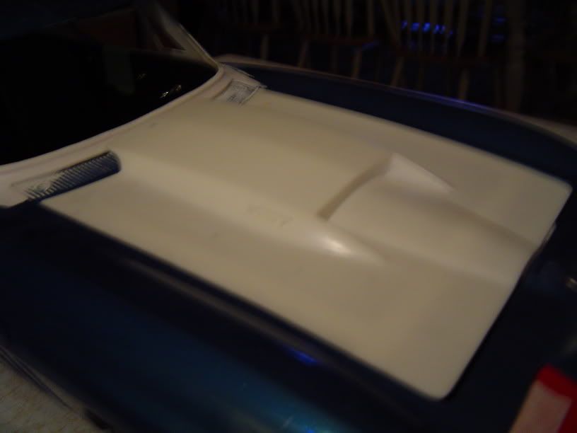 Here are some pics, some pics of the body ![]() ![]() ![]() ![]() ![]() ![]() some pics of the parts ![]() ![]() ![]() ![]() ![]() heres a pic of the hole i cut in the interior tub to hold 2 nine volt battery and other stuff ![]() this is the hood i plan to buy and use its a 1967 corvette hood, its from www.bigscalemodelers.com (great site) for 16$ US really nice piece for a resin