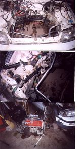 First i had to make a spreader[IMG] [/IMG] Well, she came out pretty smoothly[IMG] [/IMG] Check out this 4-1 header!!lol[IMG] [/IMG] She's a little dirty in the engine bay but i can fix that!![IMG] [/IMG] She cleaned up pretty good though.[IMG] [/IMG] Well, there's my weekend, now i get to tackle the wiring, so be expecting questions. Thanks for everyones help!!! Scott