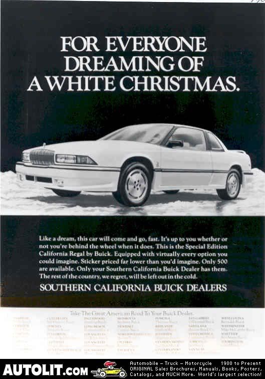 http://i23.photobucket.com/albums/b3...cts-blackb.jpg http://i23.photobucket.com/albums/b3...cts-blacka.jpg http://i23.photobucket.com/albums/b3...ts-white01.jpg http://i23.photobucket.com/albums/b3...ts-white02.jpg http://i23.photobucket.com/albums/b3...ts-white03.jpg The next set of pictures are of an 89 Regal that was listed on Ebay. It appears to be dealer prepared specialty car. http://i23.photobucket.com/albums/b377/PFJ5K/gst-a.jpg http://i23.photobucket.com/albums/b377/PFJ5K/gst-b.jpg http://i23.photobucket.com/albums/b377/PFJ5K/gst-c.jpg http://i23.photobucket.com/albums/b377/PFJ5K/gst-d.jpg The last image is an ad for another dealer prepared car with different ground effects called the California Regal. http://i23.photobucket.com/albums/b3...hotoac8001.jpg You have to love all the weird stuff you could buy in the late 80s. |