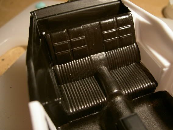 But first of all, after public demand, i tell you about that woodgrain Itīs one of those moments when something turns out much better than expected, but you really donīt know HOW you did it..1> take some Humrols "Sand" number on lid:63 and some Humbrols flat red ( no. 60) 2>I used some fine brushes,you can use the ones you find suitable for the base, but for the graining, you need finer ones, like 3/0 and 5/0. 3> I`m sorry but i canīt give you any ratios of paint since i worked in "that looks ok"-mode when i mixedčm, but i used "Sand" as a base, not mixed. Then i took some drop of the red and mixed with some sand and painted it in a wawy maner. Look at real wood and you`ll see the lines follow each other. Try mimic that. 4> i worked in whats called "wet-in-wet" so the next mix was slightly more redish. Wet-in-wet is when you work so the paint under is still wet. This gives you a grain that will look convincing, and not like layers of paint. 5> Clean brushes. Make coffee. Come back and admire your work! And this weekend i`ve painted the interior, body and chassis and started schratching the exhaust clamps and detailing the mufflers. Have taken pics, but i`ll post them when the exhaust is finished