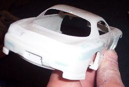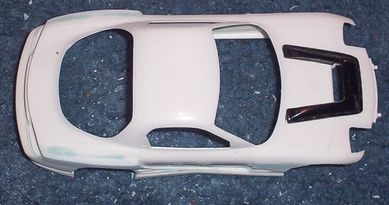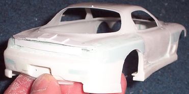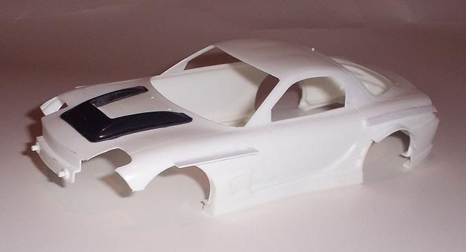 Aoshima kit, styrene strips, will be filed and filled for a widebody, hood scoop stolen from initial D RX7.
