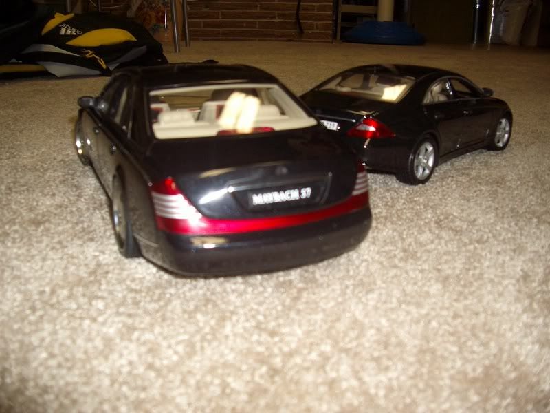 maisto mercedes-benz cls500 autoart maybach 57 w/ lowenhart wheels both are 1/18 sorry about the dark pics front of cls and maybach: http://i2.photobucket.com/albums/y7/...maybach001.jpg rear of cls and maybach: http://i2.photobucket.com/albums/y7/...maybach002.jpg inside of cls: http://i2.photobucket.com/albums/y7/...maybach004.jpg inside of maybach: http://i2.photobucket.com/albums/y7/...maybach003.jpg btw the rear doors open on the cls |