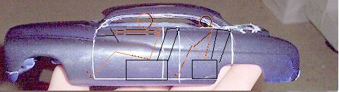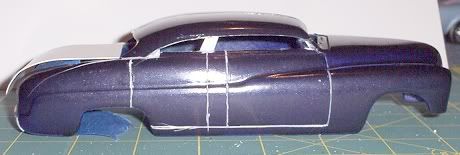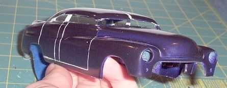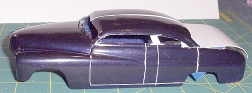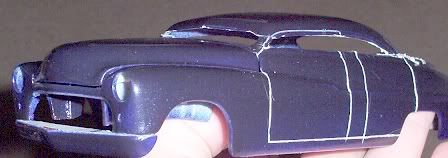 if you plan on keeping the 4 door idea i strongly suggest you reputty the rear door lines and look at a reference picture becuase a 4 door merc didnt have space between the front and rear doors , and the rear door never went over the rear wheel well like that. Overall its a good project i like it i will definatley be keeping a close watch on this one. This is mine i built this one a year ago. Goodluck with yours there should look really nice when finished. what were u thinking of doing for a rear window?