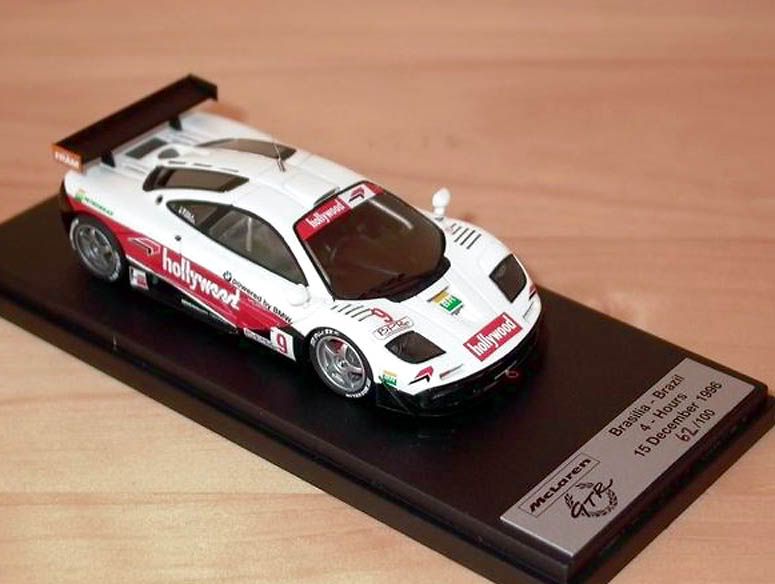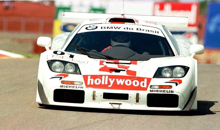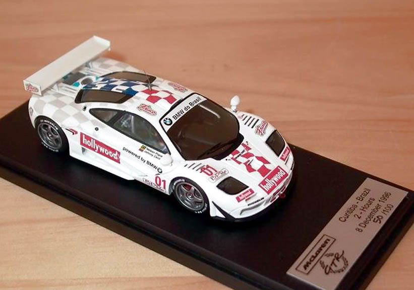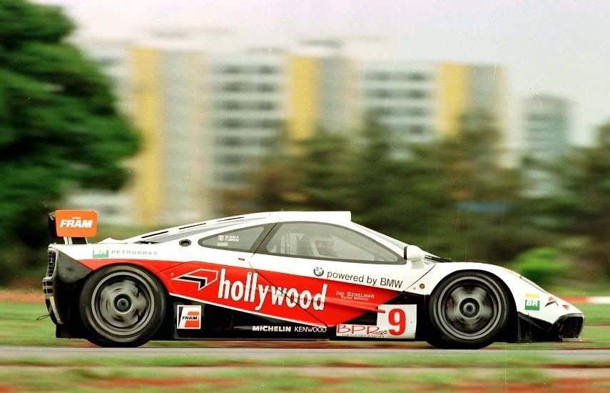 ![]() It was seen at a few motorshows in 1996 wearing this livery. I have pictures, but the quality is poor. I will give them to F1 Monster for inclusion on the website he is building though, so if you stick around you will see them eventually. At the end of the 1996 BPR Global GT season, there were two non-championship exposition races held at two tracks in Brazil. The first was a 2 Hour race in Curitiba followed by a second two hour race in Brasilia. There were three F1 GTRs in attendance at the two races - 18R, 11R, and #03R. In both races, the cars finished in the top 3 positions in the order I listed them. GTR #03R wore it's usual red/white livery and WEST sponsorship logos, but the other two GTRs wore special "Hollywood" liveries, that were each slightly different. You can see all three cars in this shot from the Curitiba race. ![]() #18R had a few visual changes - different sponsor decals obviously, and it lost most of it's blue graphics. Also the flag detail on the rear quarters was changed from blue to grey. #11R looked quite a bit different as the upper half of the car which had been orange throughout most of the 1996 season was now white, and at least at the Curitiba race the car had added touches of green on the fenders in first shot, but absent in the others. Here's a set of 3 photos of #18R followed by the only decent ones of #11R in its Hollywood livery. 18R: ![]() ![]() ![]() #11R: ![]() ![]() Autobarn Models has made a 1/43rd scale diecast of each of the Hollywood liveried cars as part of their collection. Here's a shot of each one: ![]() ![]() >8^) ER Last edited by Peloton25; 04-15-2010 at 07:54 PM. |