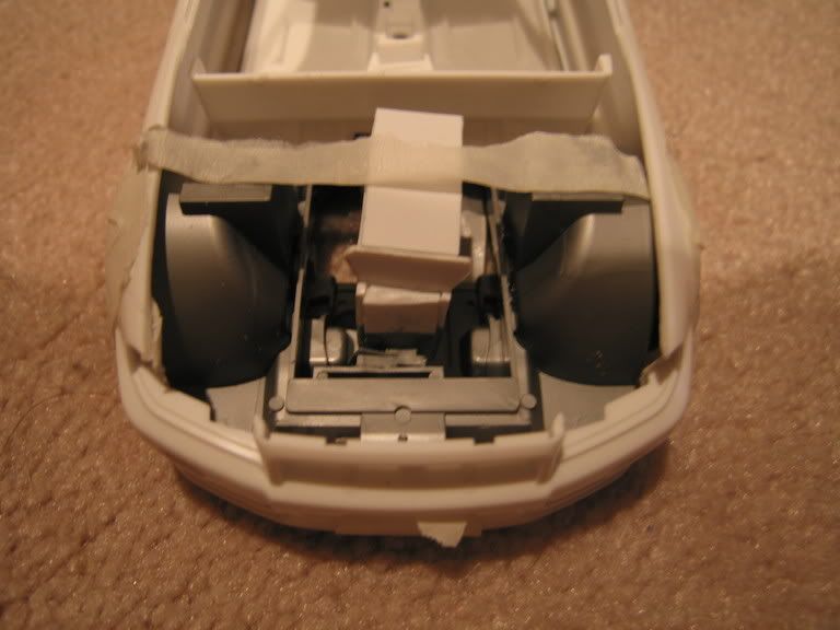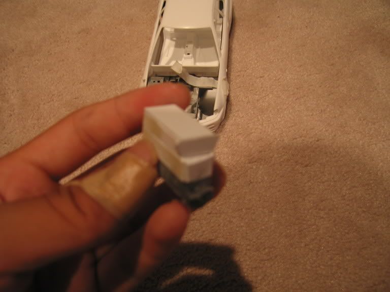 then i will say this: i started the kit today. it was a gift from a friend of mine. all i did today was cut out the hood with the back of a brand new blade, cut out the bottom of the "engine" in the original kit, and start building on that. the turbos and the intake thingamajigger were cut off, as well as the ugly pulley things(sorry, my vocab isn't working right now...). i'm gonna have to say that the engine looks pretty good for my first scratchbuild. it's not 100% accurate, but i'm happy with it so far. here are some progress pics: ![]() ![]() ![]() ![]()